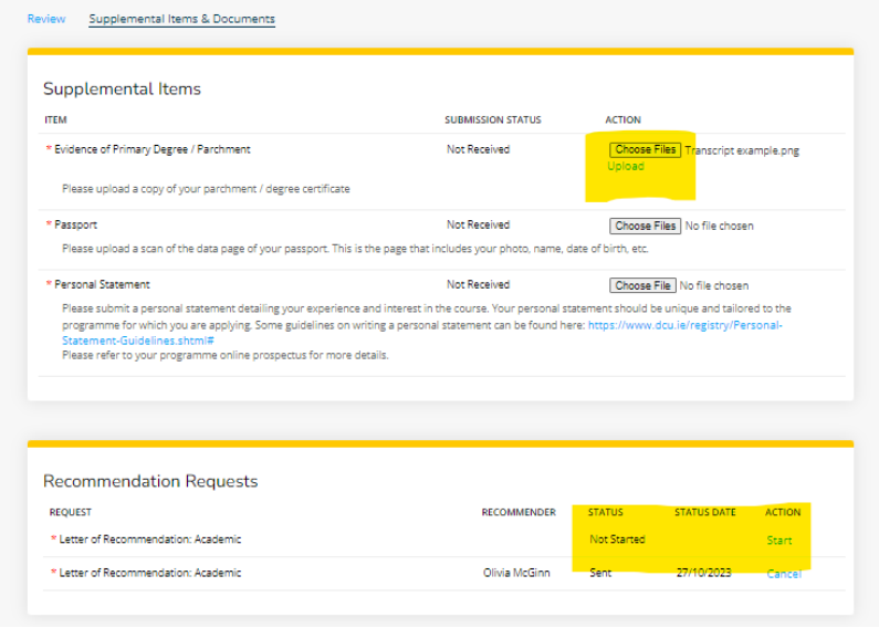 如果你的申请状态显示 “Action Required”,则说明缺少申请材料,需要补充。